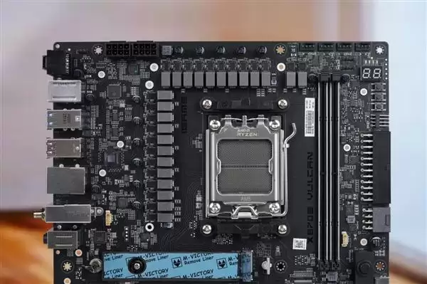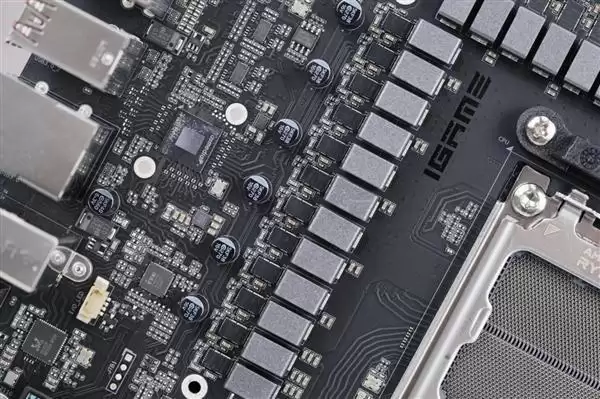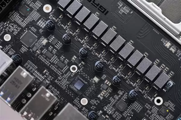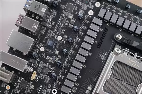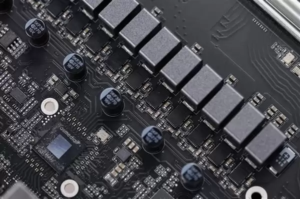 主板也设计有大面积的金属导热背板,并使用了导热硅胶垫辅助散热,进一步提升了稳定性。