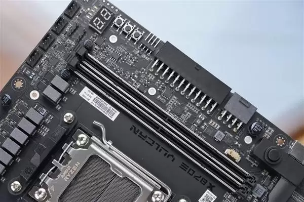 搭载两条DDR5内存插槽,在搭配锐龙8000系列处理器时,其内存最高可支持超频至10000+ MT/s。