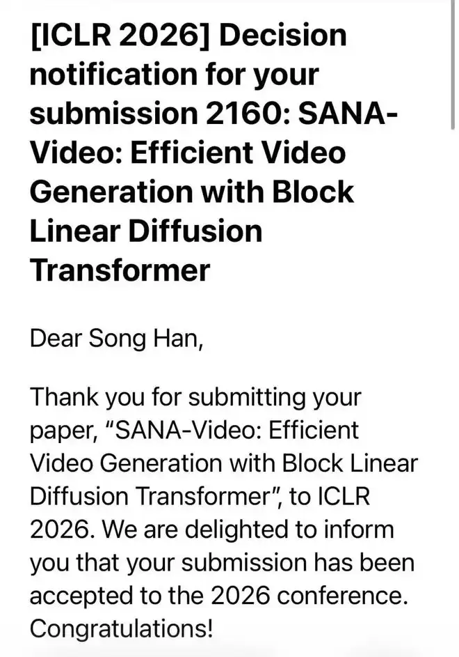 英伟达谢恩泽,参与的SANA Video和Fast dLLM系列都中了 ICLR 2026!