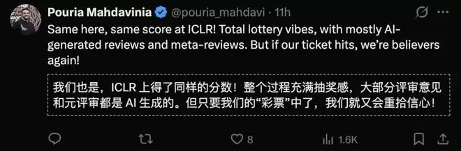 有投稿人直言,100%的评审意见全是AI生成的。