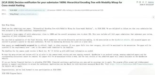 【新智元导读】ICLR 2026投稿破纪录达19000篇,录用率仅28.18%,平均分5.39创三年最低。评审系统漏洞曝光之后,作者们仍晒出喜报,如北大张铭组中5篇,庆祝努力收获。
