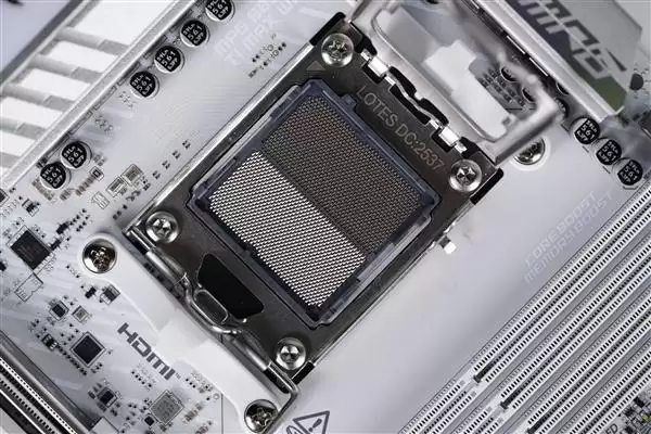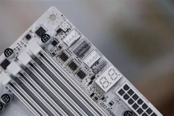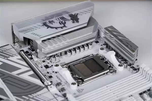 该主板采用银白色主题设计,搭配扩展型VRM散热装甲与M.2冰霜铠甲,整体外观简洁利落,极具科技感。