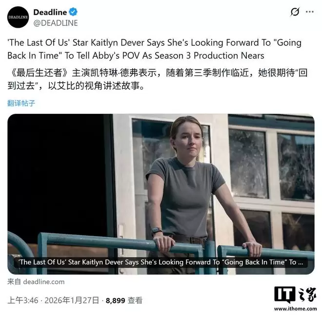 1月27日,据科技媒体IT之家援引业内消息称,《最后生还者》第三季的制作已悄然启动。饰演艾比的演员凯特琳·德弗近日在采访中透露了新一季的关键剧情脉络。