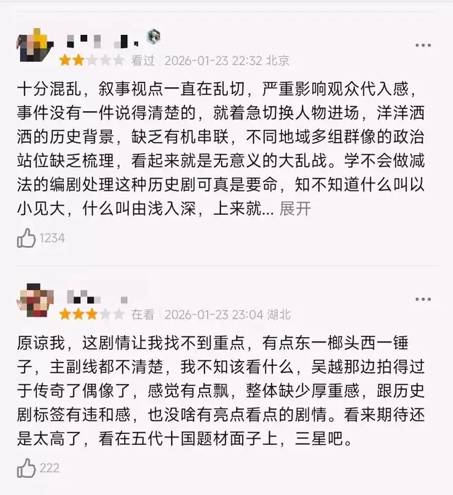 我注意到不少评论集中在两个点上:出场人物过多、叙事线索繁杂,并由此将问题直接归因于编剧,对剧集打出差评。