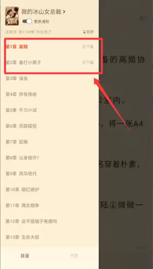 4. 在目录中,你会发现已下载的章节后面有醒目标记。选择这些章节阅读,内容加载速度会快很多。
