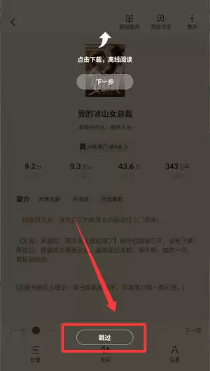 2. 在阅读页面底部,找到并点击“跳过”按钮,即可跳转至新的阅读页面。