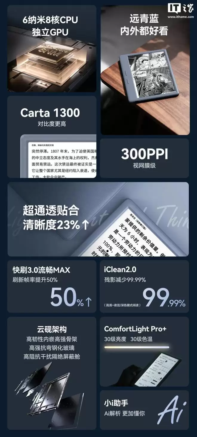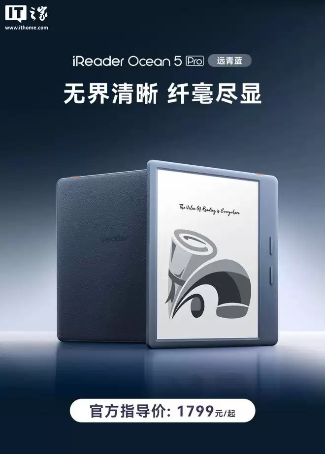 1月27日,IT之家发布消息,掌阅Ocean 5 Pro电纸书全新的远青蓝配色正式官宣上市。这款产品配备了300PPI视网膜级屏幕,内置2400mAh电池,官方指导价为1799元,将于2月3日上午10点准时开售。