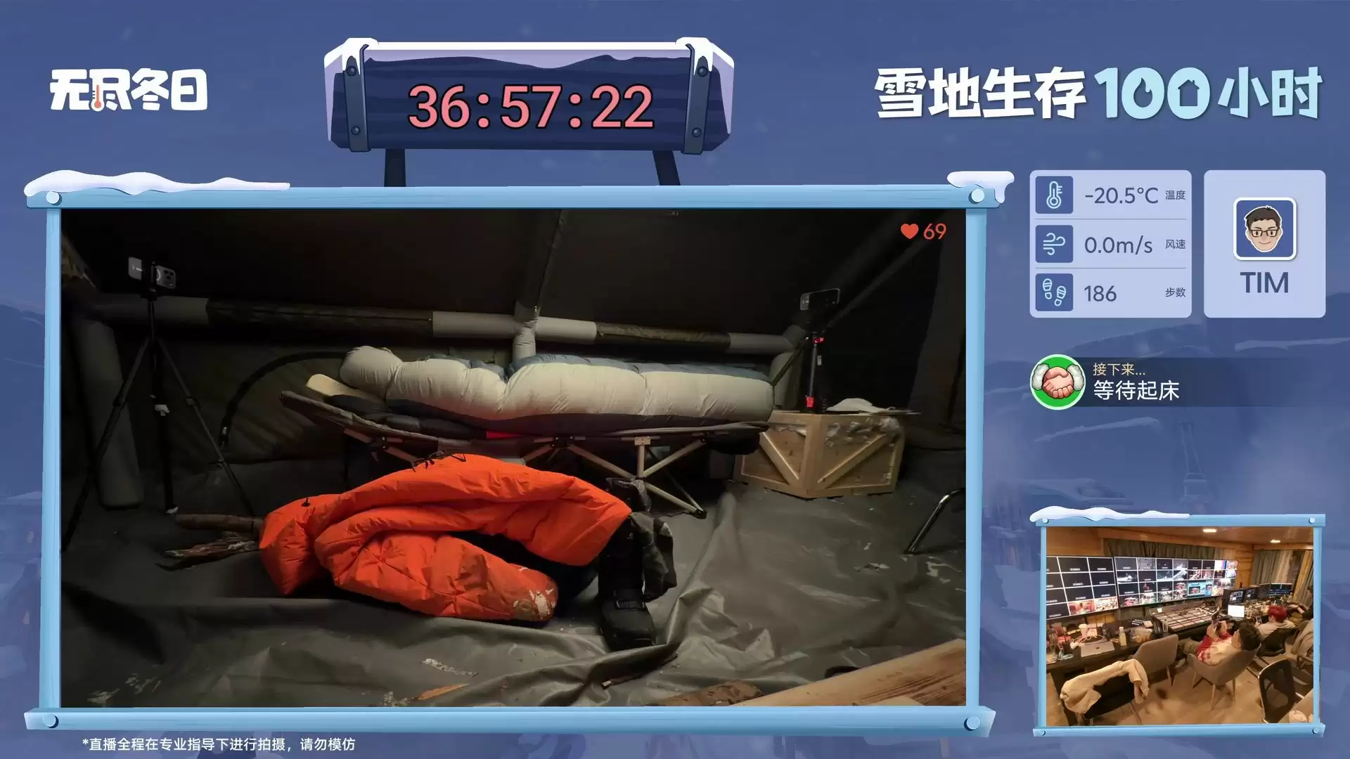 影视飓风Tim的这场直播始于1月23日,是一场在东北零下30℃雪地中连续生存100小时的挑战。直播上线后,曾吸引数万人在线围观。据悉,此次“雪地生存100小时”挑战的直播嘉宾主要有四位,户外达人Links全程随行,何同学、中国BOY、李四维等人则陆续空降助阵。