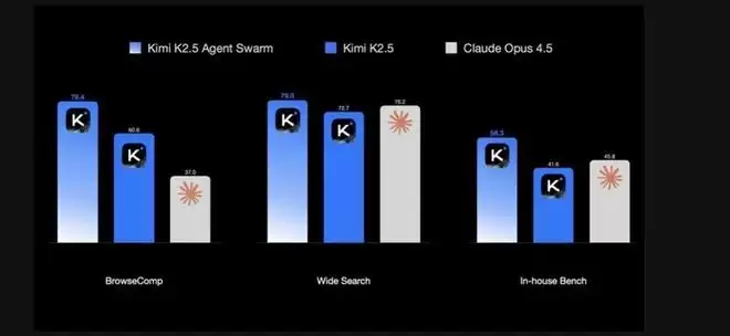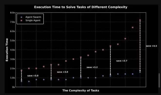 这一套创新带来很好的效果。在Kimi的内部评估中,Agent Swarm使端到端运行时间缩短80%,并支持更复杂的长周期任务负载。