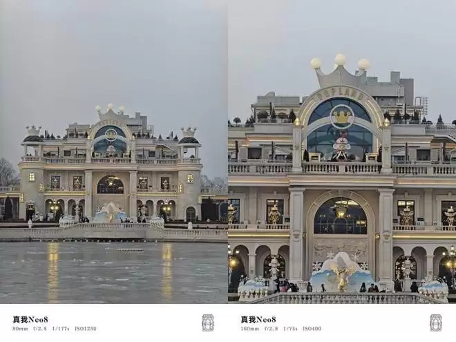 在更远距离的拍照上,真我Neo8的照片画质清晰不糊,20倍变焦模式下,建筑表面的字体、灯光效果还原精准,算法痕迹极淡,画面自然度出色。