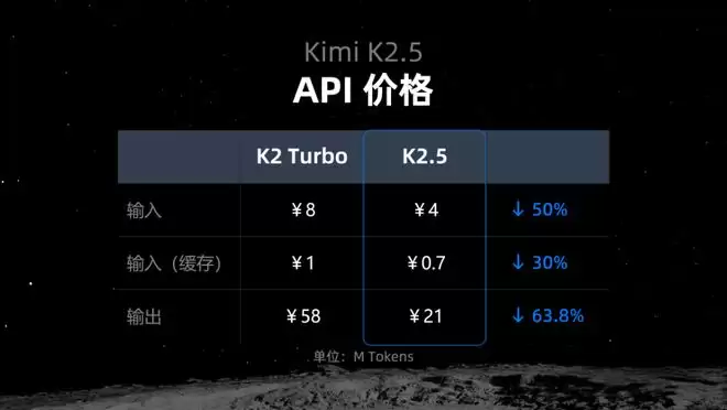 价格上,K2.5模型API输入(每百万Token)4元,缓存输入0.7元;输出(每百万Token)21元。
