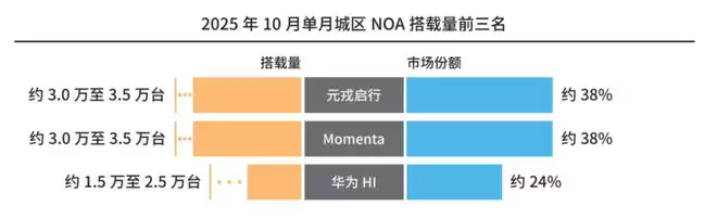 白皮书的数据显示,“华元魔”三家合计,占据2025年1至10月国内第三方城区NOA市场99%的份额。