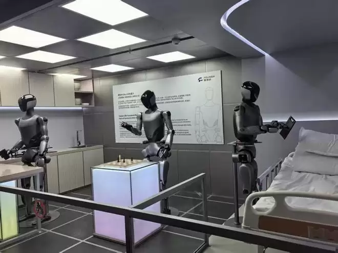 在“明日行者”展区,观众可以和来自傅利叶、智元等企业的机器人对话互动,还可亲手帮助一位从未来穿越回现在、损耗到只剩一块主芯片的机器人“重生”——修复它的同时,了解机器人是如何学会动手、行走,如何看见和听见世界。