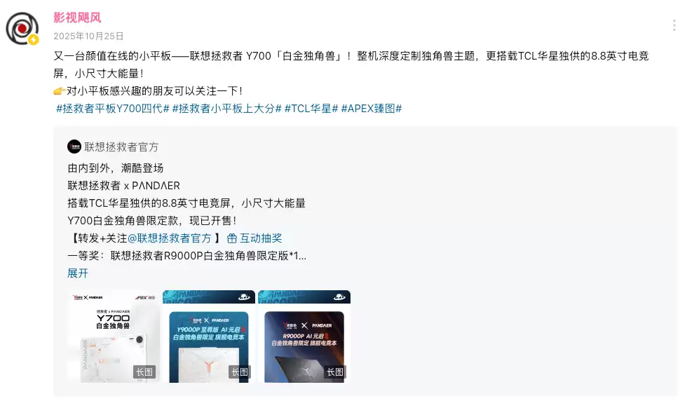 联想拯救者Y700四代发布:联手TCL华星打造极致好屏
