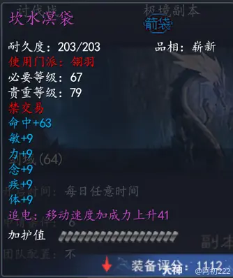 60级战场套的属性优势不大,可作为过渡装备或用来凑会心使用。更推荐手工制作的“明光套”(有力、敏、附伤、追电等属性)。