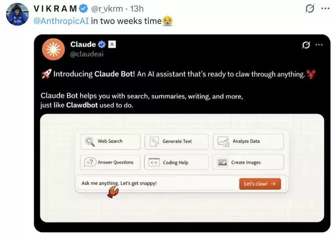 更有网友调侃,Anthropic 如此急于收回名称主权,或许是因为他们计划在两周内推出自己的手机游戏「Claude Bot」。