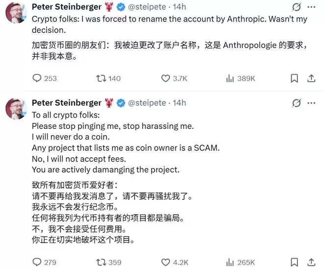 这些抢注账号随后被用于区块链诈骗,甚至有炒币者以此指责开发者。Peter 不得不连续发推澄清:这只是一个非营利的业余项目,自己永远不会发行代币,任何挂着他名字的代币项目都是骗局。