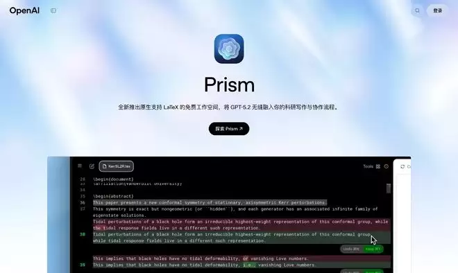 Prism 的核心定位是「AI 原生科研写作环境」。它将 LaTeX 编辑、文献检索、引用管理、公式处理、实时协作与 GPT‑5.2 的深度推理能力整合在同一平台,旨在解决科研写作长期以来的工具碎片化问题。
