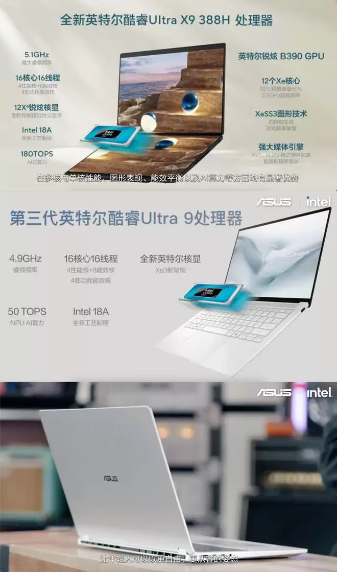 昨天,华硕举行 2026 酷睿 Ultra AI PC 全能本新品发布会,正式发布搭载第三代英特尔酷睿 Ultra 系列处理器的灵耀、无畏系列新品。