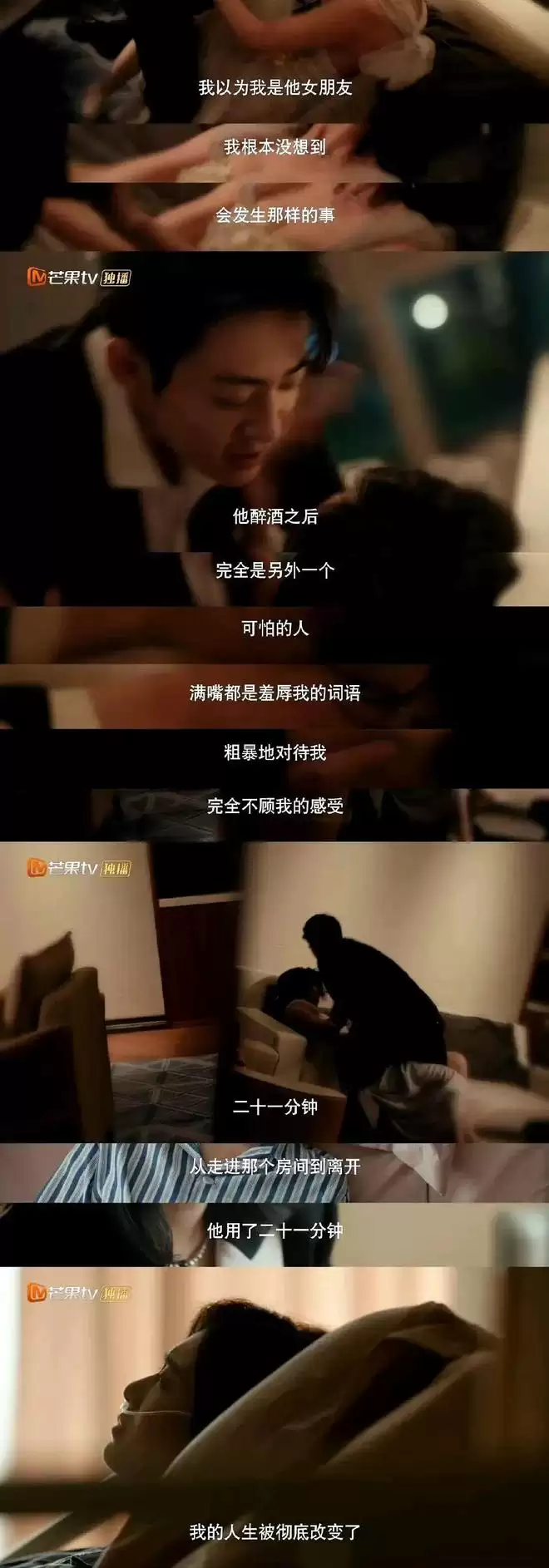 伴娘张怡并非传统意义上纯洁无瑕的受害者,她曾担任车模,在婚宴上对富二代伴郎主动示好,甚至刻意装醉靠近对方。然而,剧集通过这一设定,直白批判了“完美受害者”谬论,明确告诉观众:主动不等于同意,边界被打破的瞬间,施害者就必须承担责任。