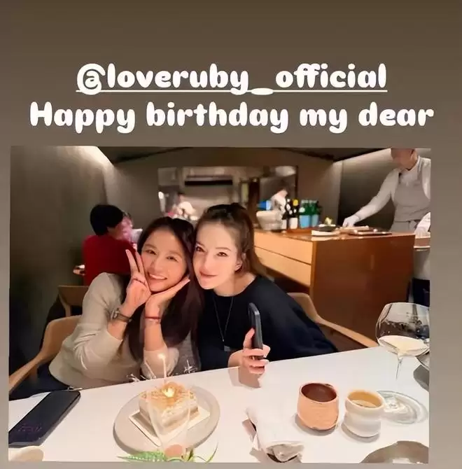 好姐妹Melody陪林心如一起庆生,Melody分享和林心如往年的旧照片,两个人贴脸合影,姐妹情深。