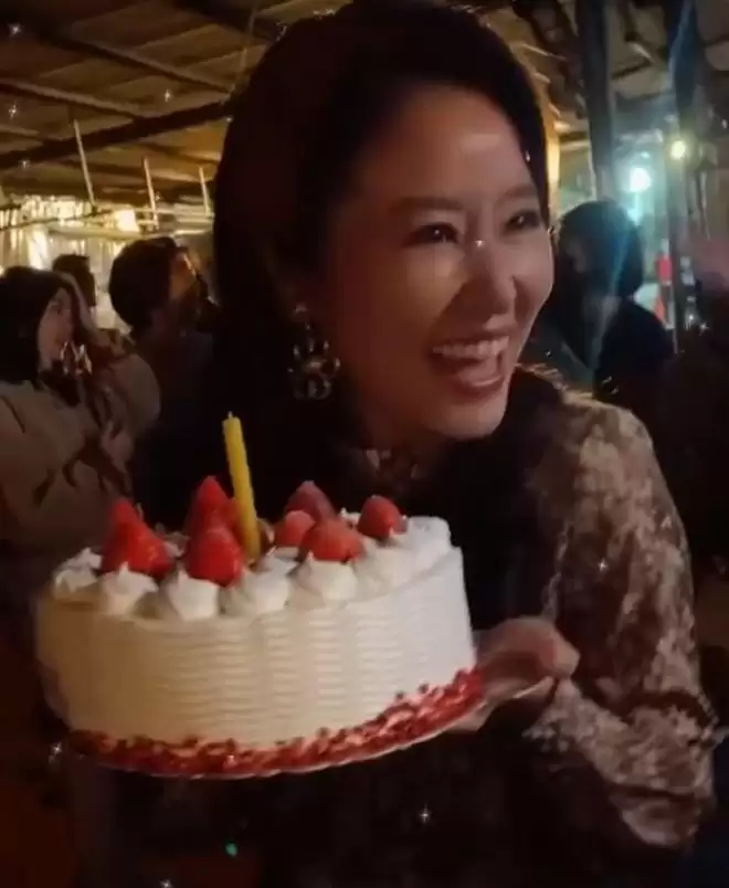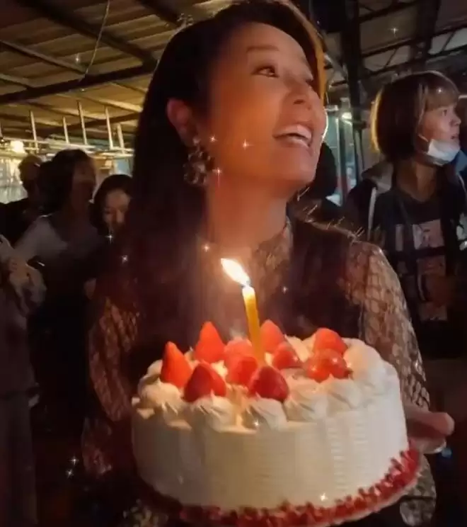 手捧蛋糕的林心如在剧场和大家欢聚一堂,50岁的生日注定是热闹非凡。