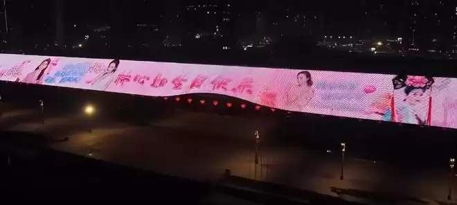 现场长达400米的粉紫色灯光与河水倒映,超级浪漫的视觉效果令人感动。