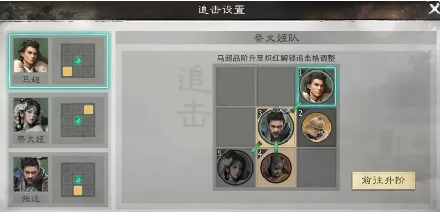 站位策略上,张辽必须置于蔡文姬或马超的追击格范围内,以最大化“鼎力相助”的覆盖率与“横刀耀武”的触发频率。面对高血量Boss时,需优先为其叠加增益效果(如暴击率、攻击加成),此举可同步提升追击发动概率与单次爆发上限。因此,强化张辽的生存与输出稳定性,是该阵容通关效率的核心保障。