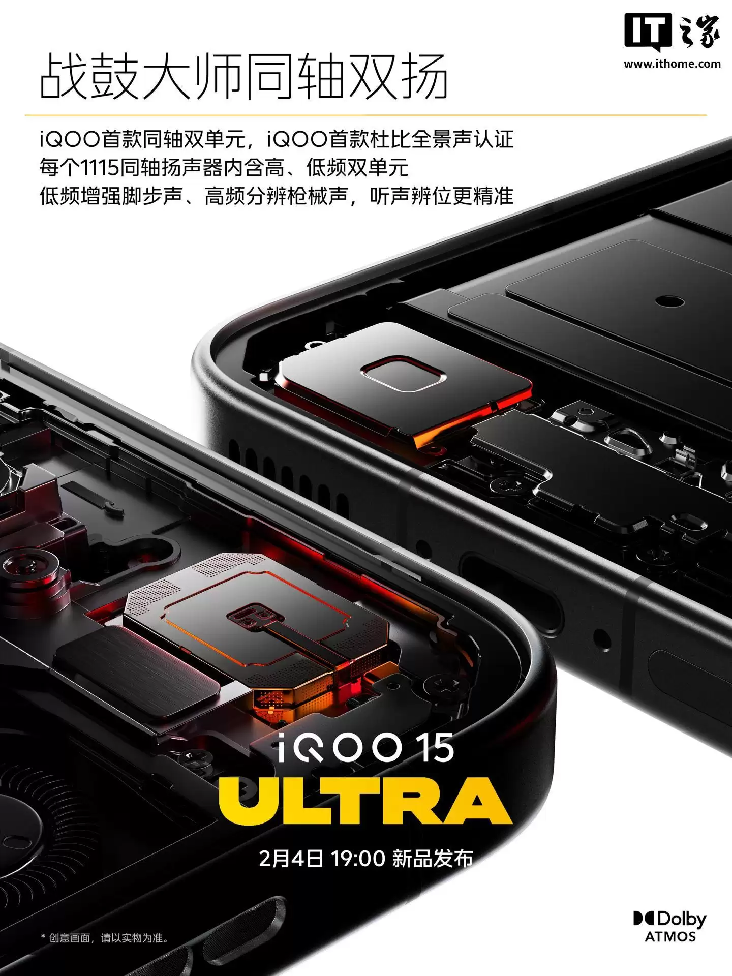 1月28日,来自IT之家的消息,iQOO手机官方今日介绍了即将推出的iQOO 15 Ultra在游戏方面的全新配置组合。这款新机率先采用了iQOO首发的“战鼓大师同轴双扬”系统,并同时获得了iQOO首款“杜比全景声”的专业认证。简单来说,iQOO 15 Ultra配备了同轴双单元扬声器(1115E同轴),并支持听声辨位功能。