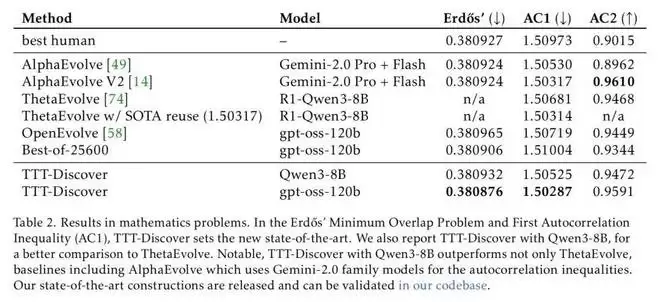 而在另外两项测试中,TTT-Discover 同样取得了非凡的成绩。
