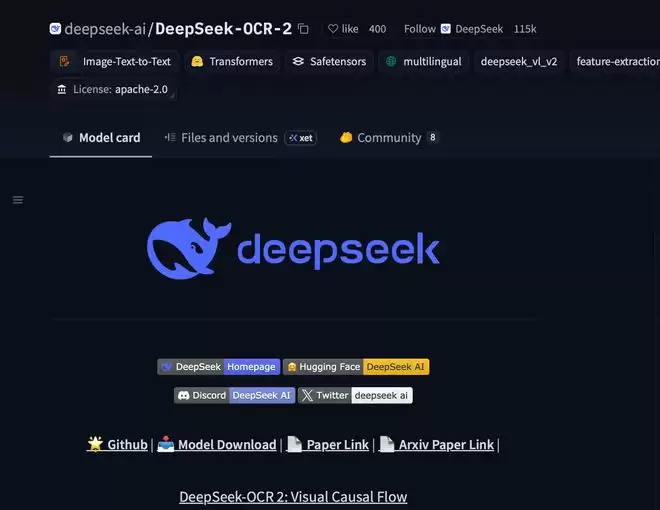 同日发布的DeepSeek-OCR2模型是去年10月最新推出的DeepSeek-OCR模型的迭代版本,团队采用了创新的DeepEncoder V2方法,让AI能够根据图像的含义动态重排图像的各个部分,而不再只是机械地从左到右扫描,这种方式模拟了人类在观看场景时所遵循的逻辑流程。