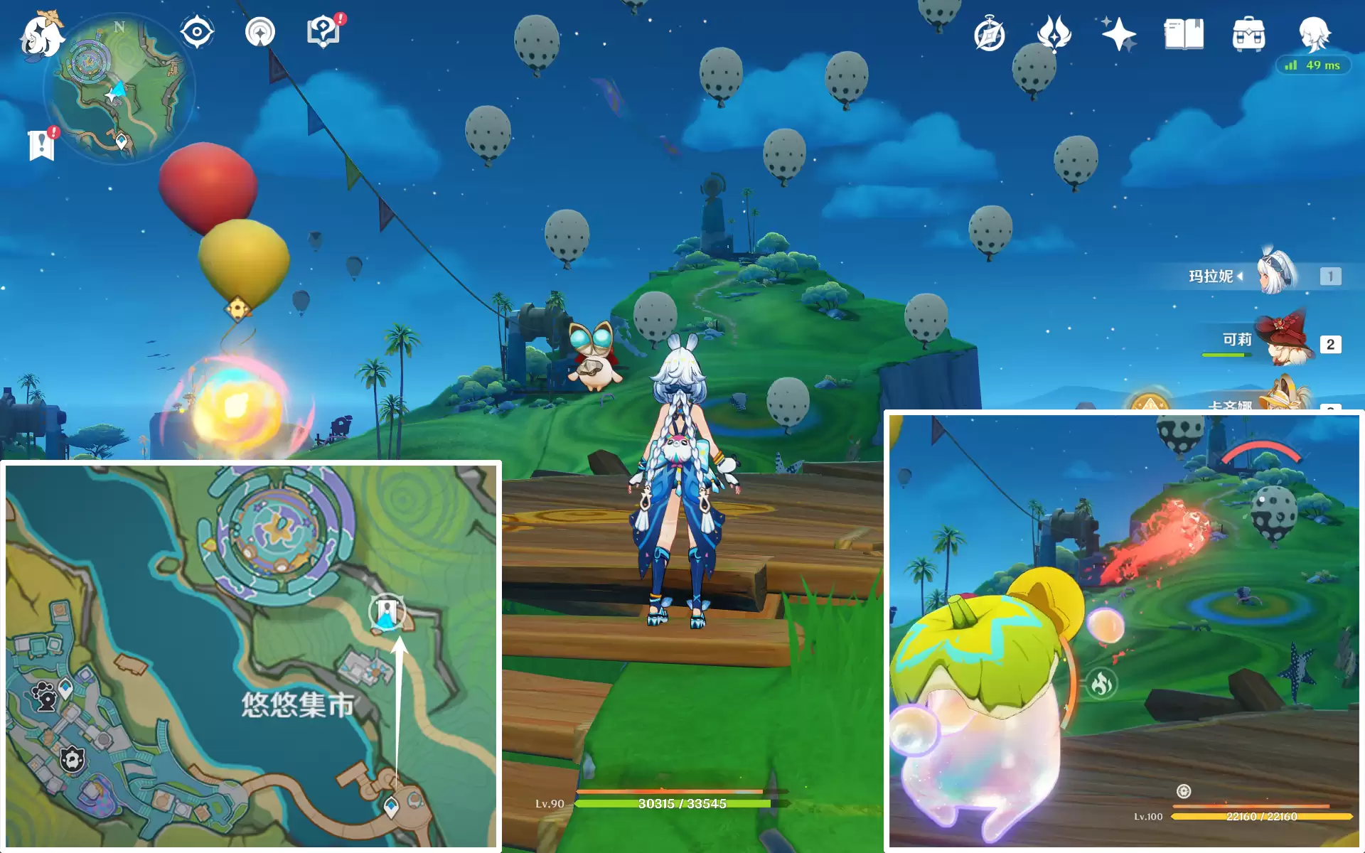首先,传送到悠悠集市北侧,地图上木台标记的位置。到达后,你会看到许多等待涂色的气球。
