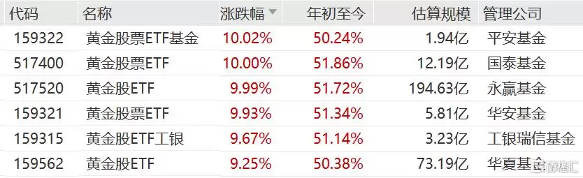 多只黄金主题ETF罕见封于涨停,年内累计涨幅已超过50%。