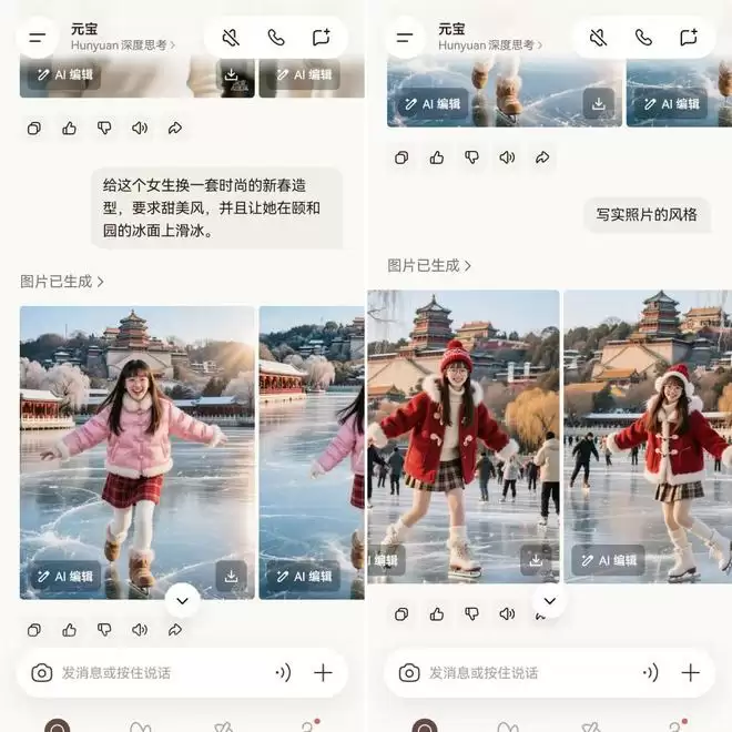 我们还可以让元宝给我们换一套妆造,替我们去颐和园滑冰: