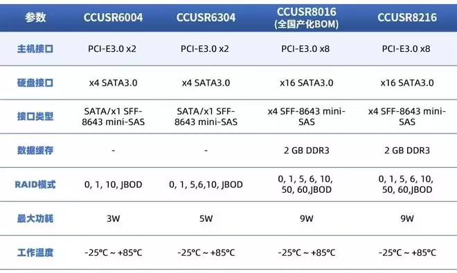 存储服务器领域,RAID 卡成为硬盘阵列的 “核心管控中枢”,既保障数据存储的安全性,又能充分释放硬盘的读写性能,同时适配存储服务器的业务场景(如大容量归档、高IOPS 业务、高可用集群)和硬件架构,CCUSR8216和CCUSR8016可以对标平替LSI 9361的RAID卡产品,推进同类产品的国产化替代。