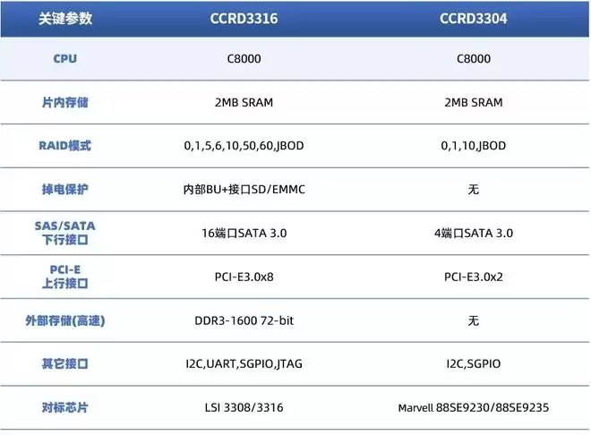 国芯科技基于自研的处理器内核推出了系列RAID(冗余磁盘阵列)控制芯片。CCRD3316芯片面向服务器磁盘阵列管理领域,CCRD3304芯片面向工控与边缘计算领域。