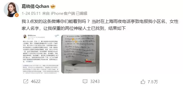 2024年10月,葛晓倩称自己遭遇了匿名电话的开盒与威胁。