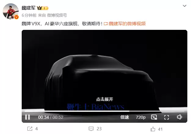 长城汽车董事长魏建军近日通过社交平台发布视频,正式宣布旗下高端品牌Wey的新车型V9X即将亮相。这款被定位为“AI豪华六座旗舰”的新车,将搭载长城汽车最新研发的顶级技术序列“归元S”,并基于全球首个原生AI全动力汽车平台——归元平台进行打造。