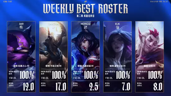 2026LPL第一赛段周最佳阵容:第二周组内赛精选