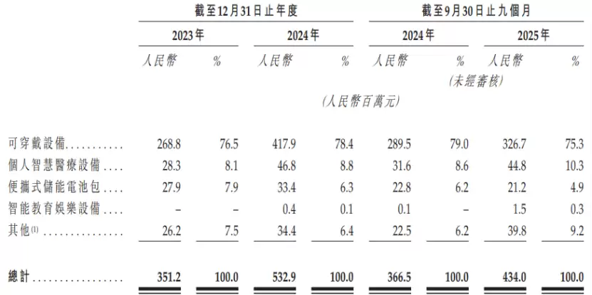 从收入结构来看,报告期内(2024年、2024年及2025年前三季度),可穿戴设备领域贡献了公司超过75%的营收,个人智慧医疗设备占比约为10%,而便携式储能电池包、智能教育娱乐设备等业务占比较低。例如,在智能教育娱乐领域,公司为全球领先玩具制造商开发了AI玩具备专属电池模型,并已获得样品订单。