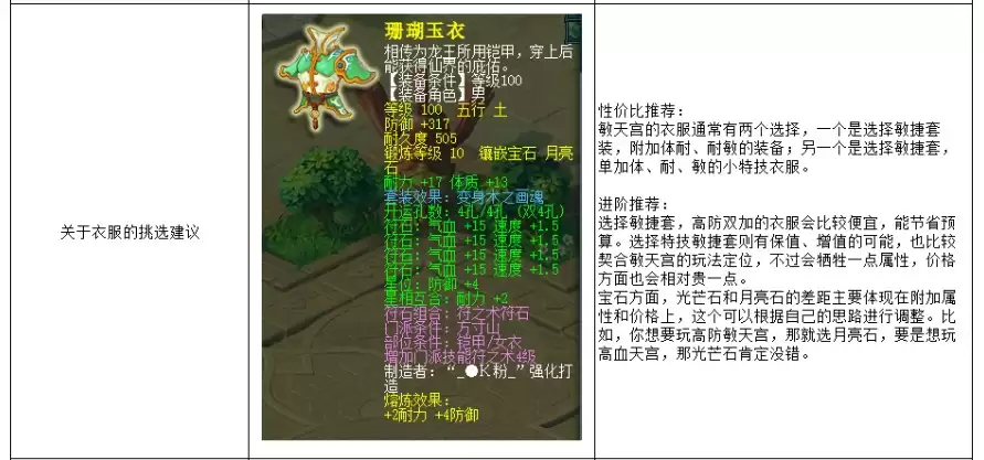 敏天宫的装备核心是“敏捷套”,最好能附加特技。比较契合109等级的敏捷套有画魂、雾中仙、巴蛇和人形猫灵,其中与天宫最为匹配的是画魂套。此外,天宫是拥有任务符石套装(天雷地火符石组合)的,选择至少2件4孔装备来激活任务符石,收益相当可观。具体的挑选建议如下: