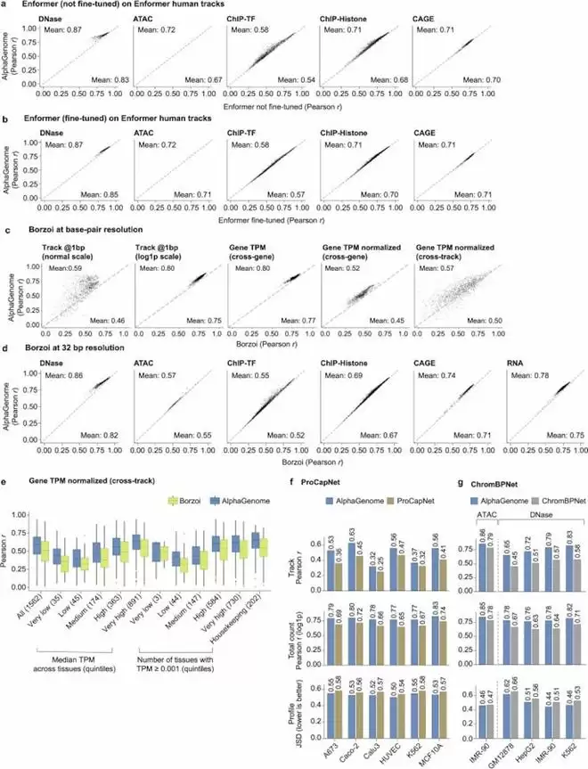 ▲研究团队基因组轨道上的预测性能进行了逐项评估