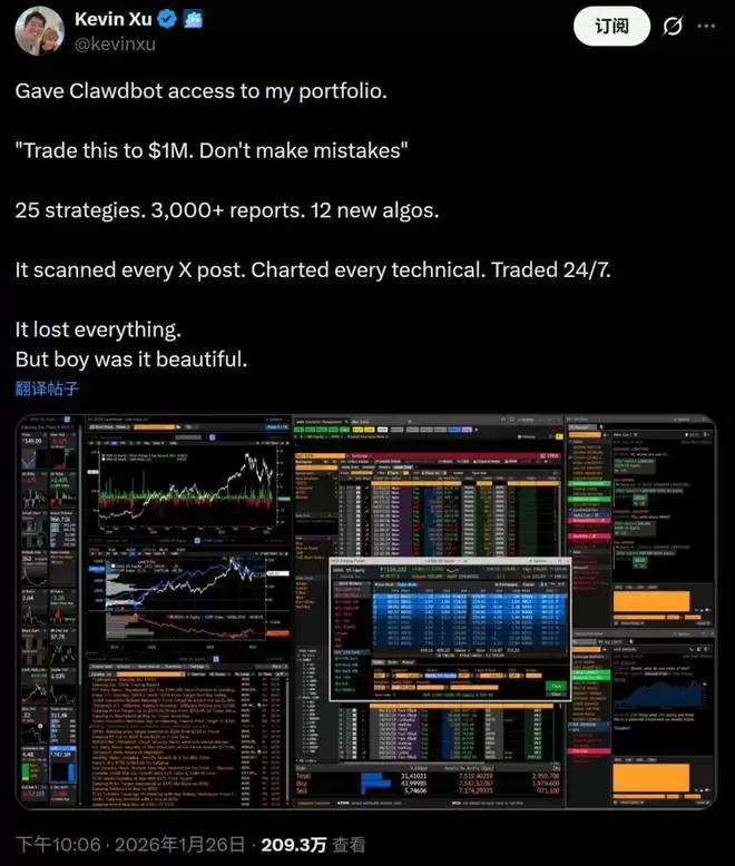 Clawdbot 出现之后,让 AI 帮你干活,自己只管收钱的梦想似乎不再遥远。有人已在这样尝试:Alpha.AI 的 CEO Kevin Xu 直接让 Clawdbot 接管了自己的理财小金库。