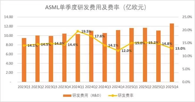 图:ASML单季度费用及费率情况,来源:企业财报,锦缎研究院整理