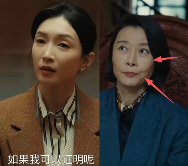 但这次在《夜色正浓》里出场,观众就被她硕大的苹果肌,以及略歪的嘴角给震撼都到了。