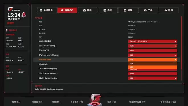 如果进入BIOS设置还是显得复杂,没关系,X870E火神在IO背板还加入了X3D一键超频按键,按下后即可加载自动PBO预设,也可以快速提高CPU性能从而带来更流畅的游戏体验。