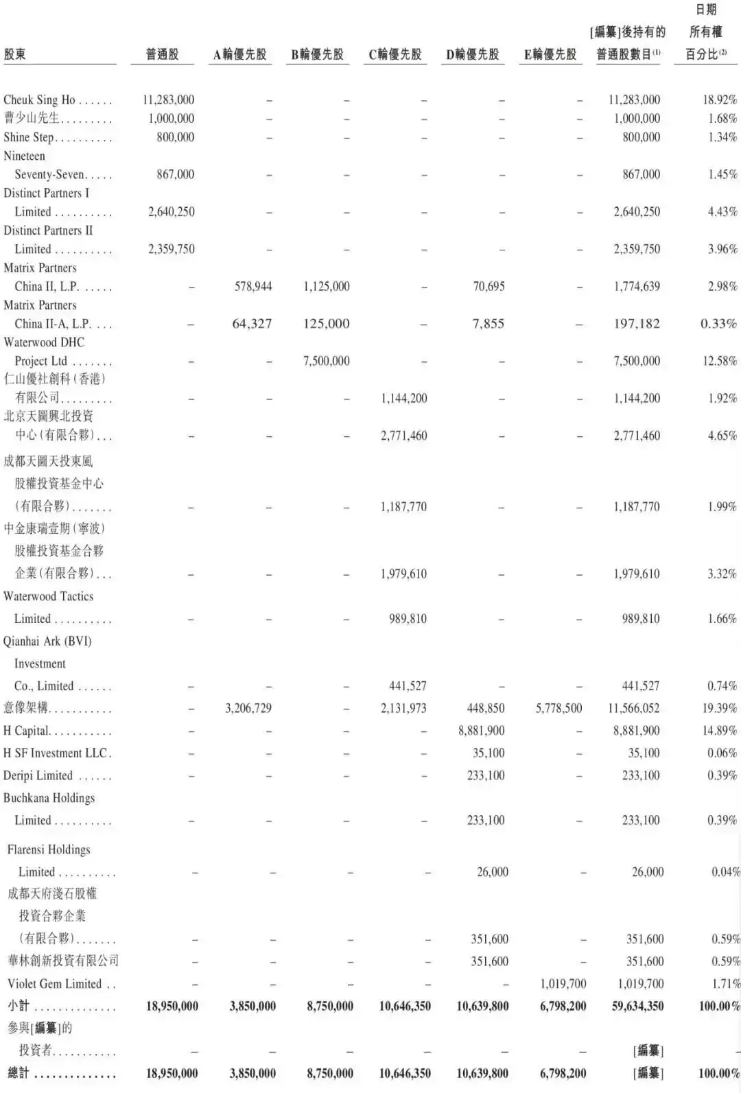 完成首次公开发售后,Cheuk Sing Ho持股将调整为17.52%,曹少山持股为1.55%,Nineteen Seventy-Seven持股为1.35%,Distinct Partners I Limited持股为4.1%,Distinct Partners II Limited持股为3.67%;