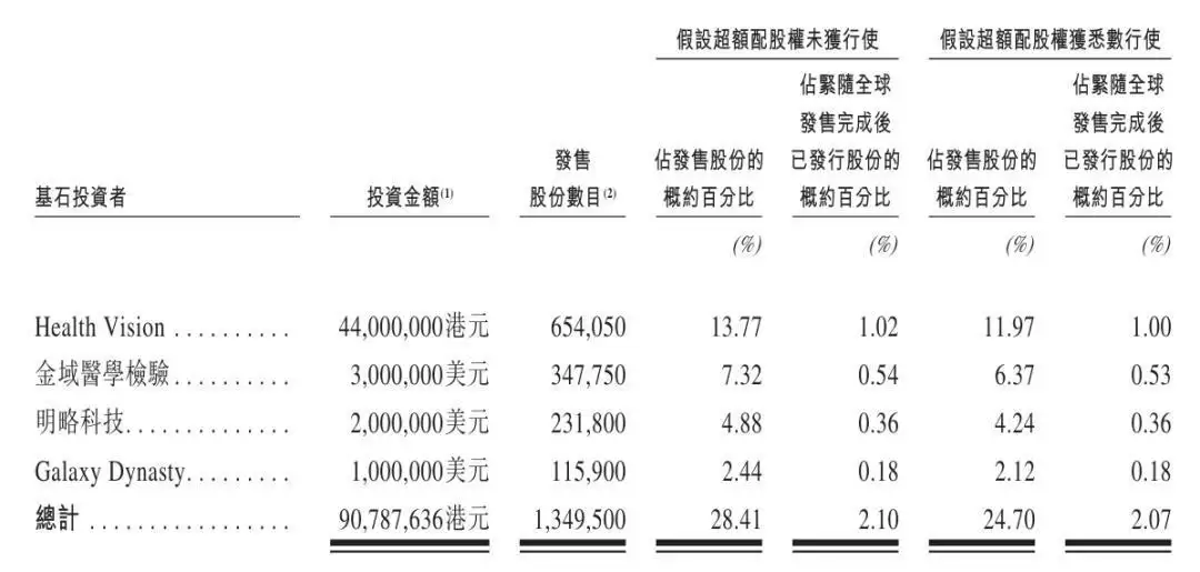 卓正医疗的基石投资者分别为Health Vision、金域医学检验、明略科技、Galaxy Dynasty,合共认购9079万港元。具体来看,Health Vision认购4400万港元,金域医学检验认购300万美元,明略科技认购200万美元,小鹏汽车董事长、CEO何小鹏旗下基金Galaxy Dynasty则认购100万美元。