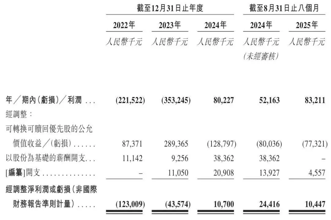 卓正医疗2022年度、2023年度、2024年度经调整净利润分别为-1.23亿元、-4357万元、1070万元;2025年前八个月经调整净利润为1045万元,上年同期的经调整净利润为2442万元。