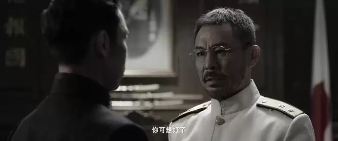 在《长河落日》大结局中,藤田马上即将退兵,他想要利用最后的机会,跟叶德公长谈,争取让叶德公屈服。为此,还威胁叶德公,如果不从,就走不出办公室。